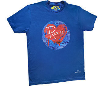 Whether lounging at home or marching at the latest protest, we've got you covered (literally) in our vibrant, 100% cotton Resist! tees. Soft, breathable, and imbued with the spirit of righteous resistance these times cry out for. Please check the size chart to ensure a proper fit. Machine wash cold with like colors. Tumble dry low. Do not iron design. T-Shirt Made in Honduras and Nicaragua. Printed in USA.